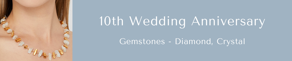 The traditional 10th wedding anniversary gemstones are diamonds. Lily Gardner London's beautiful diamond slice and gold necklace is a departure from the traditional set diamond jewellery. This necklace is a modern take, using diamond slices that emphasise its artisanal qualities. It will be the perfect gift for the woman who likes a more relaxed style. The good news for this anniversary is that there are alternatives too. Onyx gemstones (incorporating black lace) and crystal jewellery (as earrings and necklaces) are also official gems for the 10th.