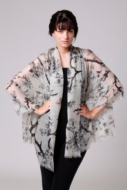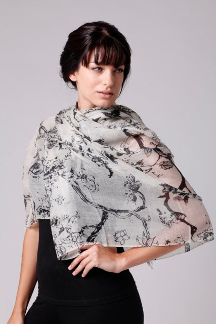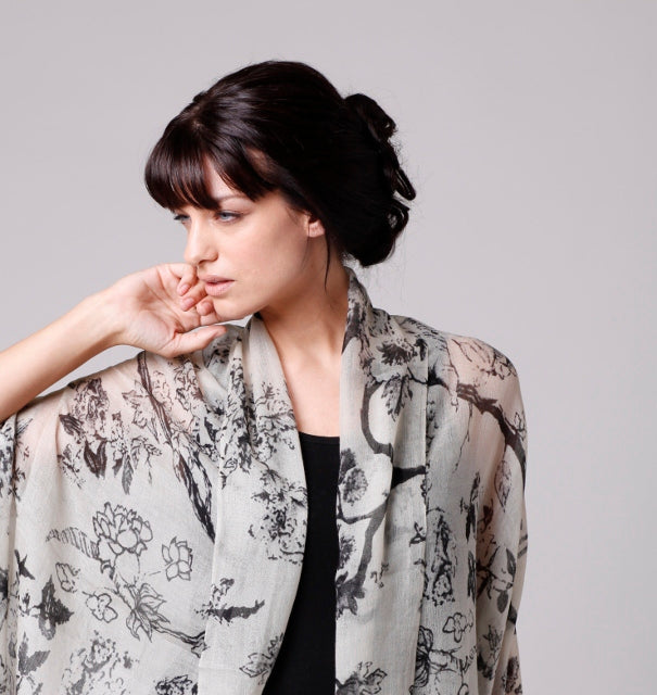 14th Wedding Anniversary Ivory Floral Cashmere Scarf