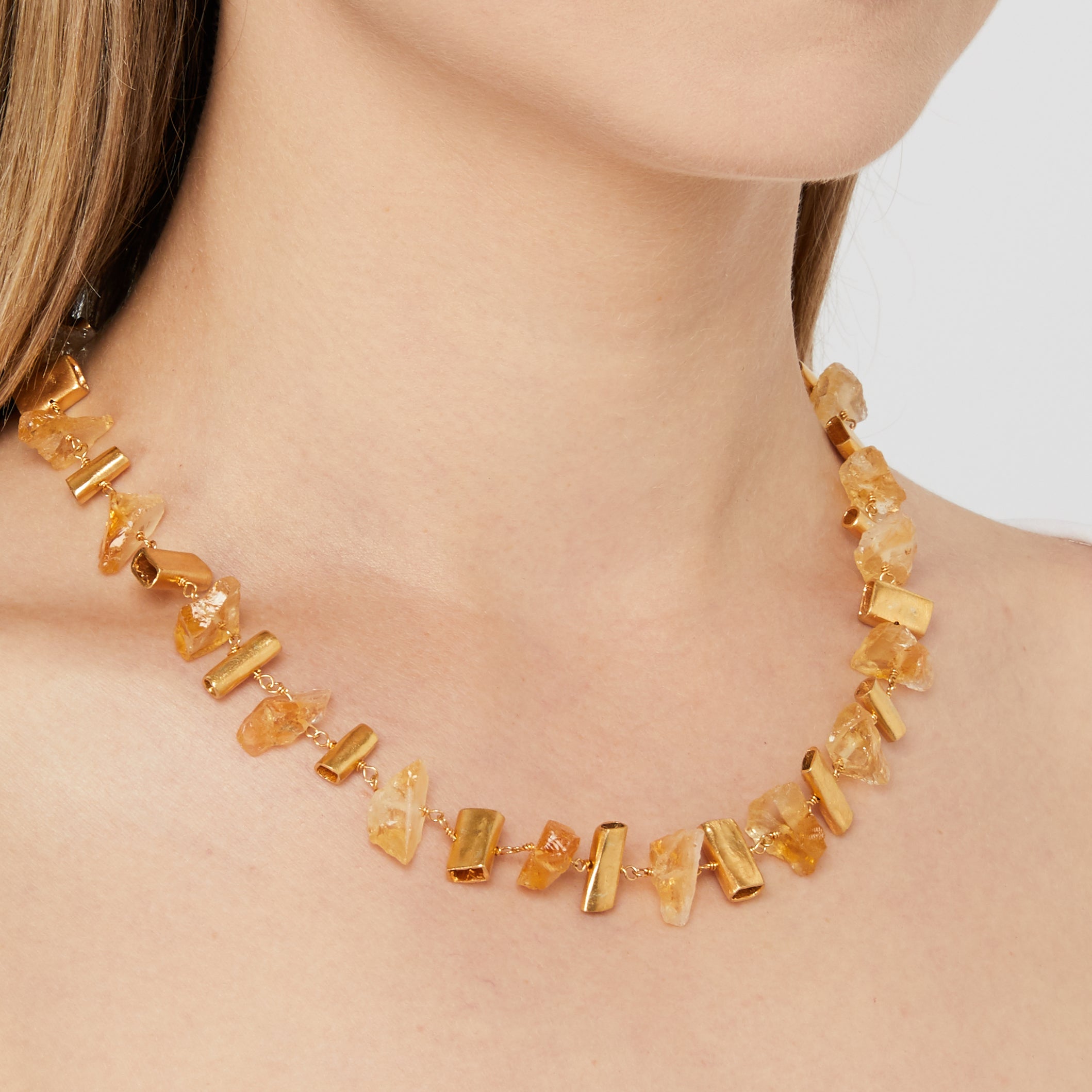 1st Wedding Anniversary Citrine & Gold Stone Necklace