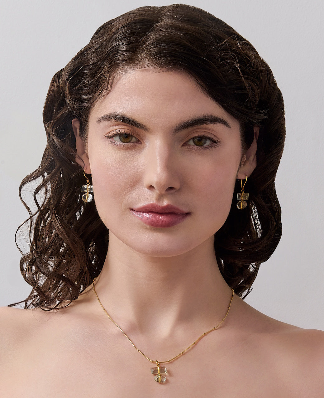 This little blue amethyst and gold parcel makes an intriguing contemporary pendant on a chain necklace. Match it with our blue amethyst parcel earrings. Perfect with an open neckline.