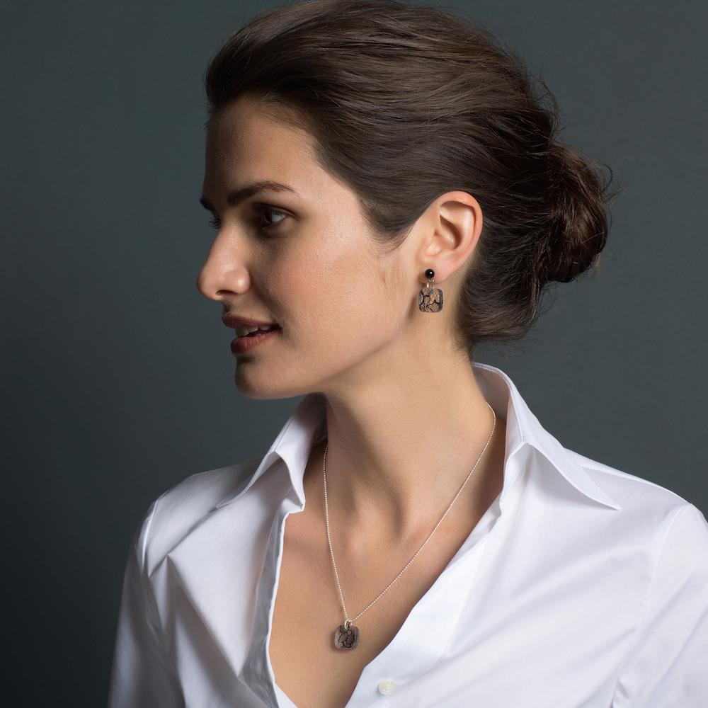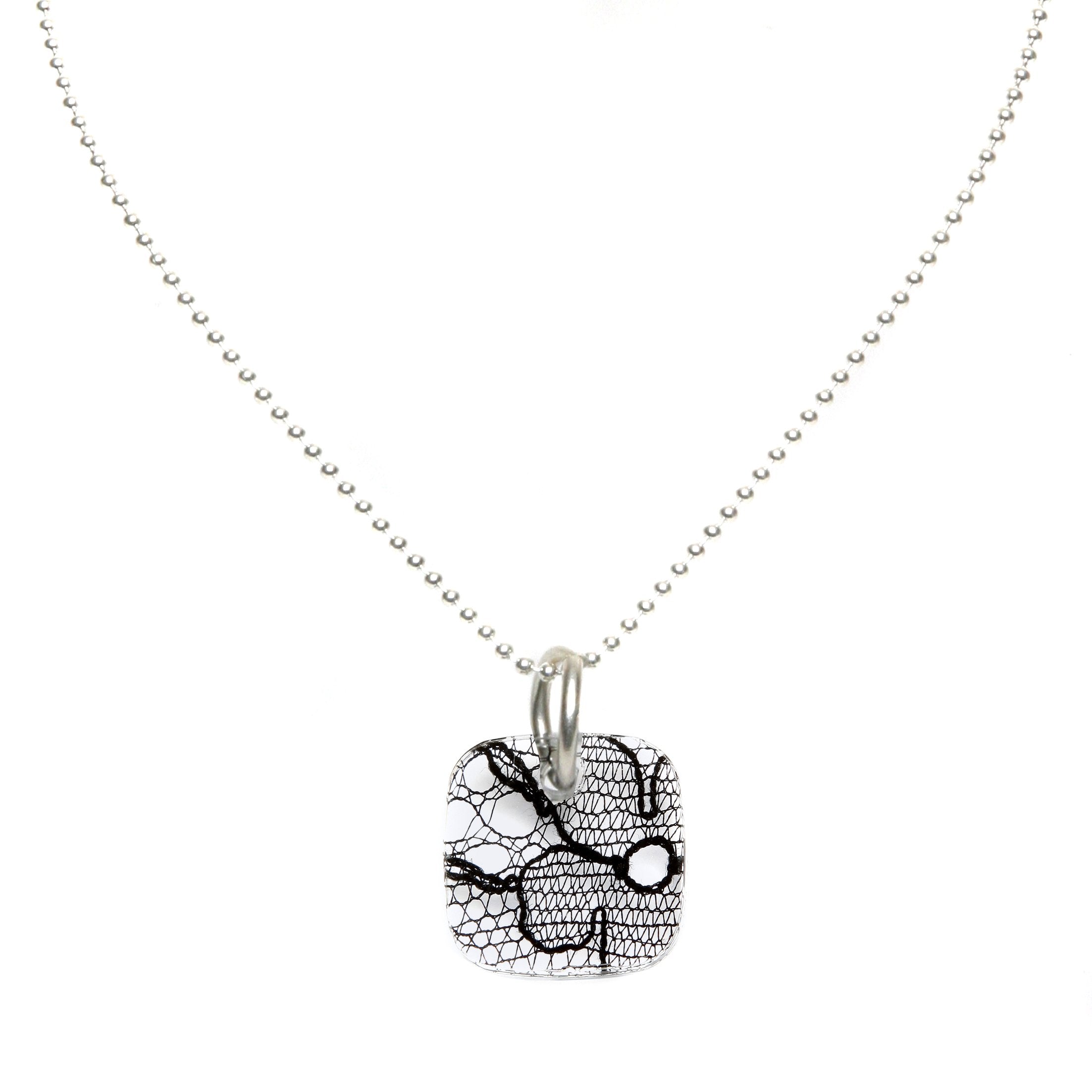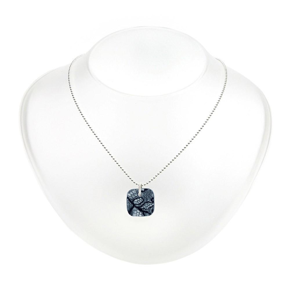 Square Lace and Silver Pendant Necklace - Small