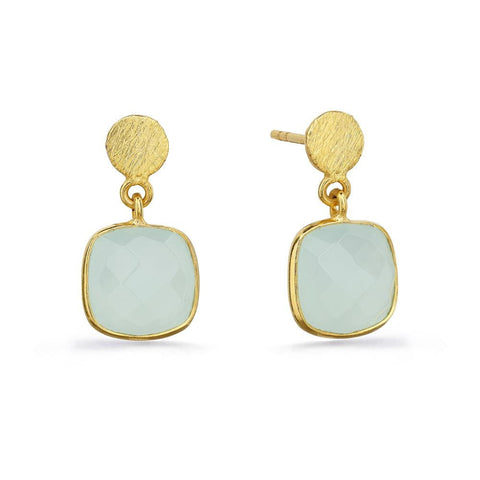 1st Wedding Anniversary Gold Aqua Drop Earrings