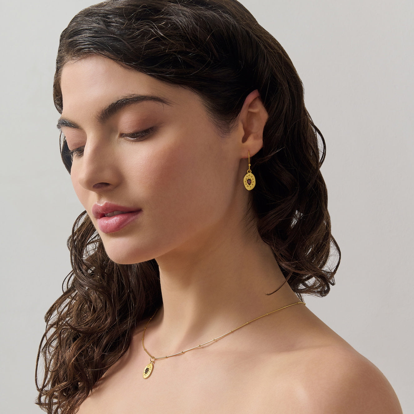 These delicate garnet and gold artisanal earrings make a great focus any outfit. They're discreet but catch the light. Wear them with a matching pendant and layered gold chains or on their own.  Perfect jewellery if you are looking for your own personal talisman - or as a meaningful gift for someone special. Garnet symbolises trust, strength, and courage.