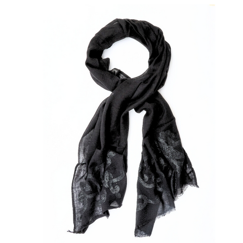 Black Sequin Floral Wool Scarf