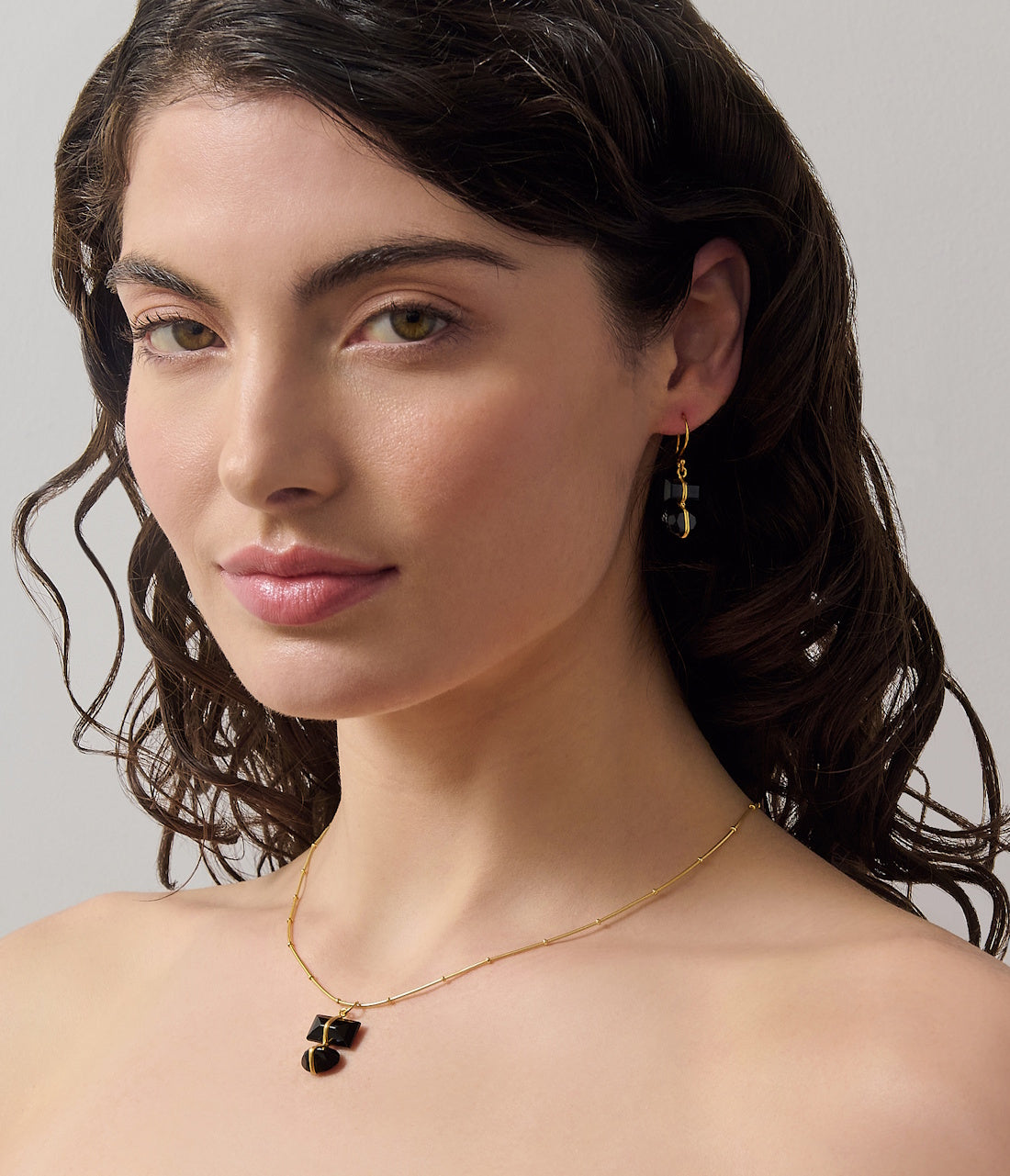 These beautiful black and gold onyx parcel earrings are an elegant accessory for any black outfit or neutral toned wardrobe pieces. Perfect as a set with our black onyx and gold parcel parcel pendant necklace. Small, elegant and eye-catching earrings that can work at the office, evening or weekend.