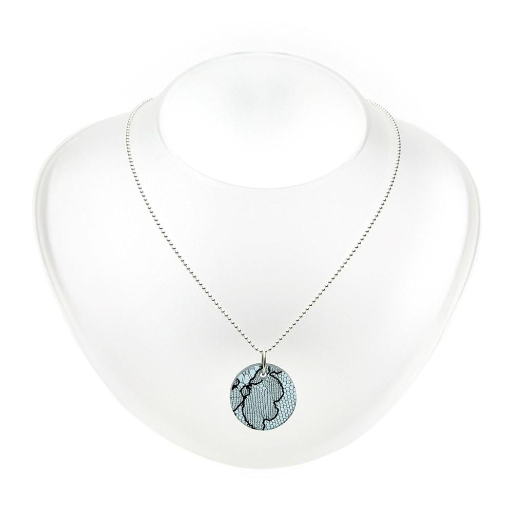 13th Wedding Anniversary Round Lace and Silver Pendant Necklace - Medium