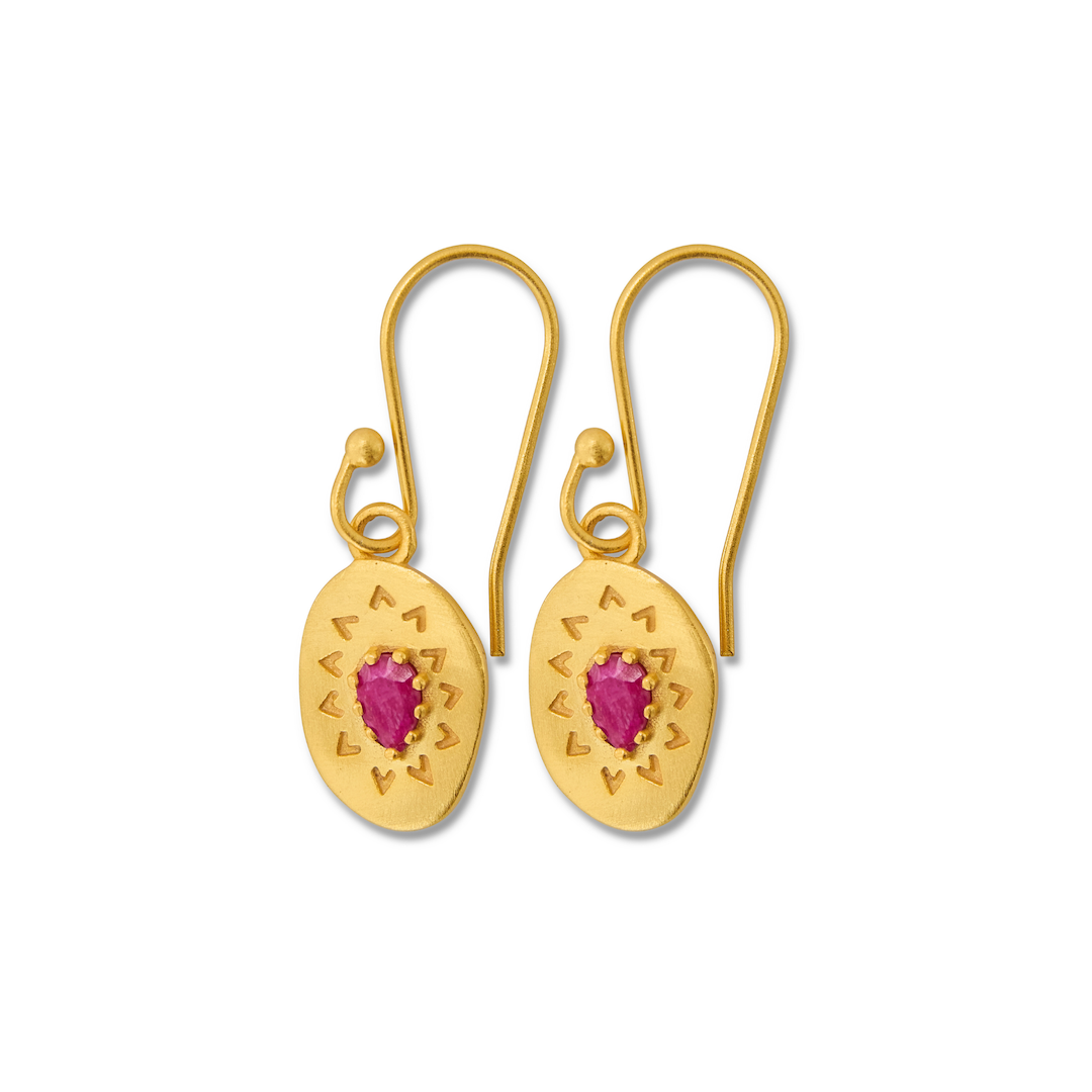 15th Wedding Anniversary Ruby Gold Artisan Earrings