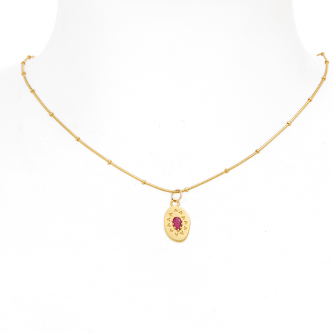 15th Wedding Anniversary Ruby Gold Artisan Necklace