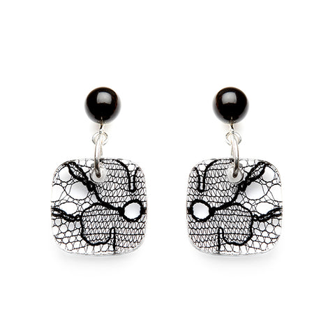 8th Wedding Anniversary Lace Cushion Square Earrings