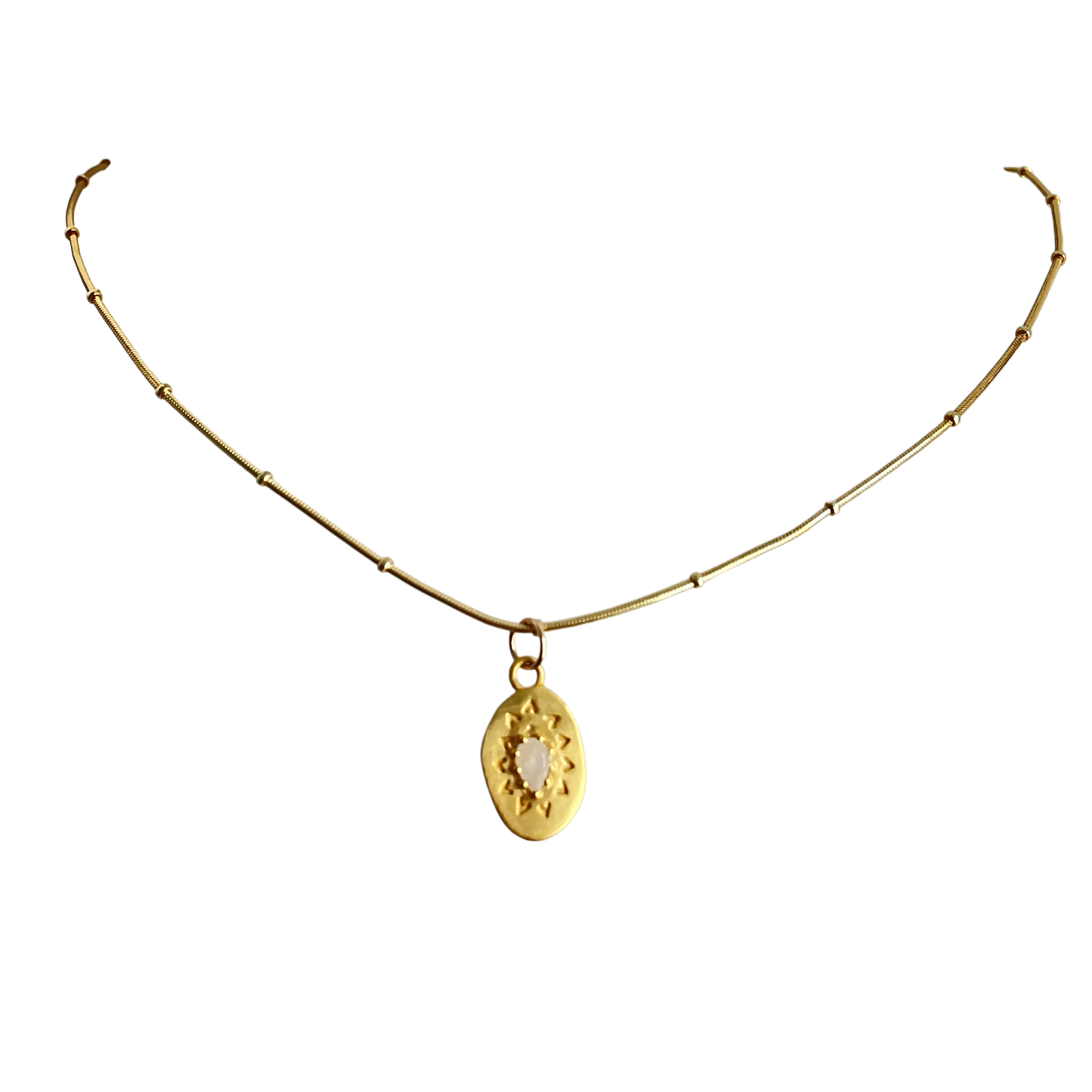 White topaz is one of the traditional April birthstones so this beautiful white topaz and gold pendant necklace makes a particularly meaningful gift. White topaz is said to ward off negative energy.