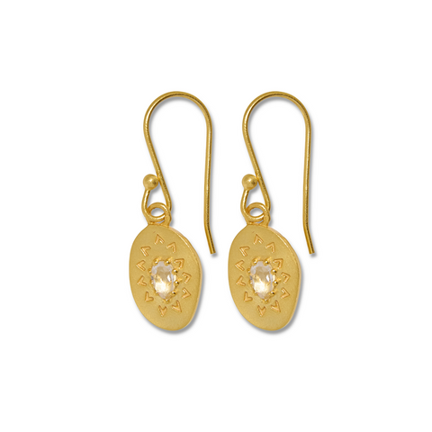 April Birthstone White Topaz Gold Artisan Earrings